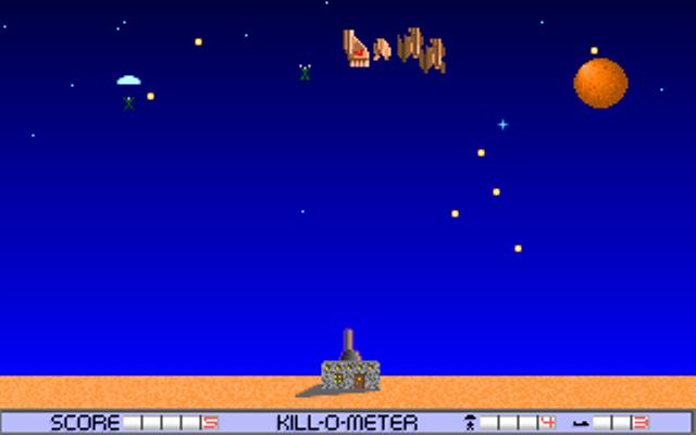 There is something to be said for the graphics, too. If you shoot the troopers parachute, he waves his arms as he plummets to the ground. During level intermissions, you get entertained by asides like pizza deliveries. For a game that three guys put together, it’s pretty detailed.