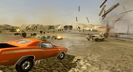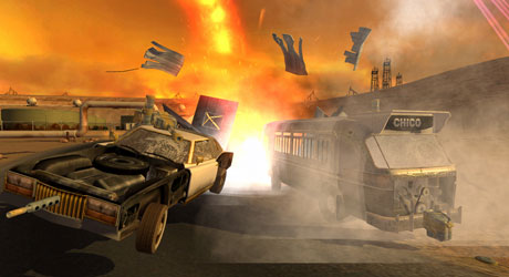 There is a story somewhere in this game but it is of little importance since your primary objective is to destroy any vehicle that is not you, unless you are playing co-op. The game is influenced heavily on “That 70s Show” motif, so expect modified vehicles with heavy weaponry from that era and the occasional thick mustache.