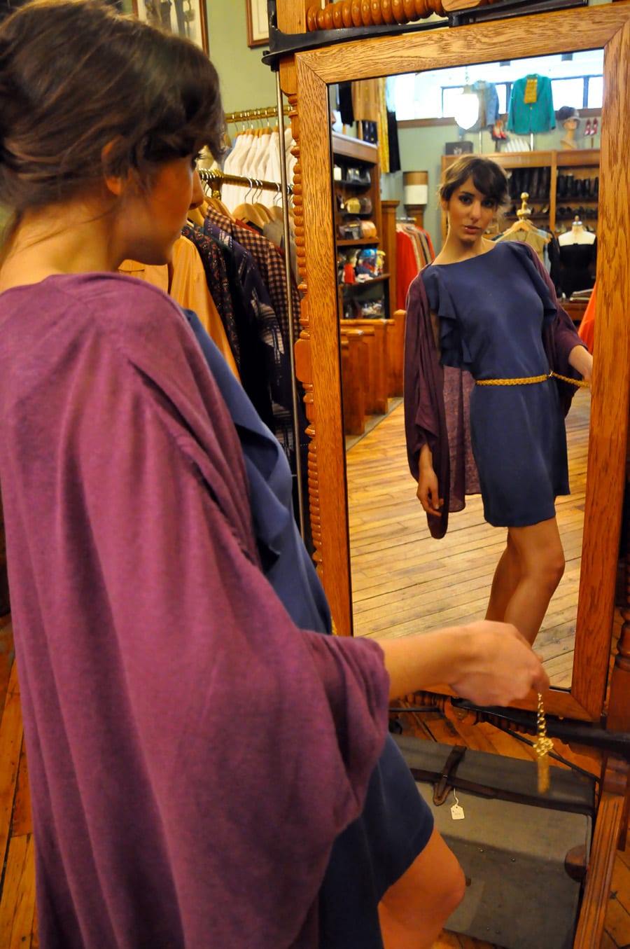 The last detail that made the shoot a success was the setting. Bobby from Boston, a unique vintage store and a true jewel in the South End of Boston, provided the best background. There, we could mix the fresh styles that you will see everywhere these coming months with the richness and history of retro fashion.