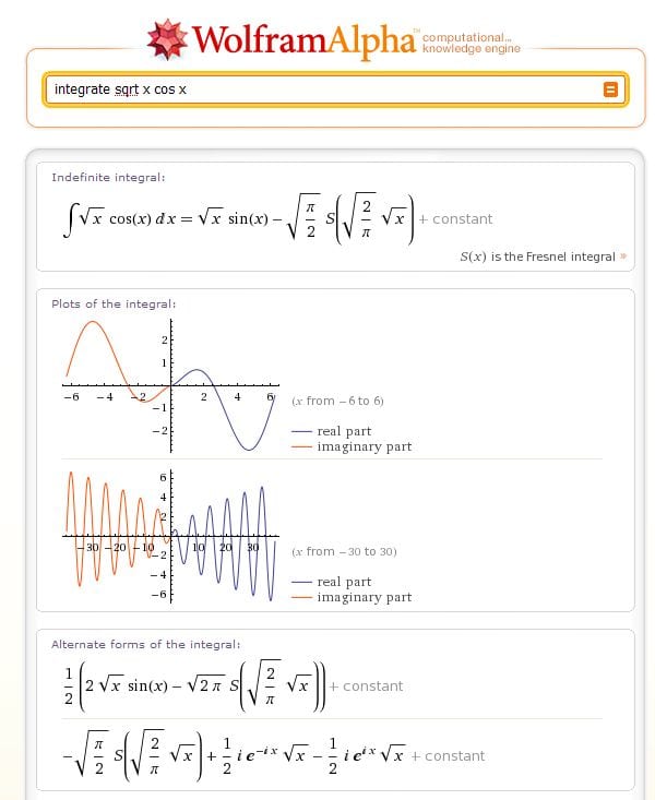 Launched last month to much fanfare (but, unfortunately, to less critical acclaim), Wolfram Alpha is a computational search engine that crawls the Web to collect, parse, and curate all the data on the Internet “" certainly a lofty goal. The data used by Wolfram Alpha comes from government and public databases (think CIA Factbook, the NCBI, and Wikipedia). The power behind Wolfram Alpha comes from Mathematica, which helps it graph mathematical functions, maps, musical staves, and stock quotes among a seemingly endless list of possibilities.