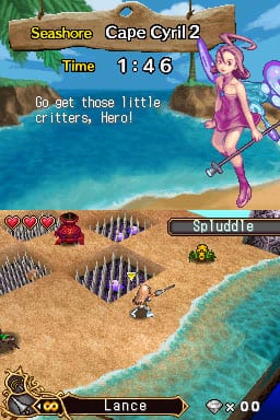 Wisecracks like this are a common element of the game, most emanating from reluctant hero Anise. She wants no part of saving a kidnapped prince and the kingdom at-large from the threat of the Almighty Demon Emperor. Unfortunately, because of a thief with the same name as her “" wink wink, nudge nudge “" she takes up the mantle of “legendary hero” instead of being strung up at the gallows. The supporting cast is similarly nutty. The unidentified voice from the game’s opening moments is your guardian fairy, Kukri, who zealously insists that you are the legendary hero, and whom Anise ignores with hilarious thought bubbles for the majority of the game. Although the Demon Emperor is capable and coherent, none of his henchmen are, especially the sprite-ish demon Lucretia. How does she talk? Well, she always asks her own questions and provides her own answers, often repeating, that’s how she does it!