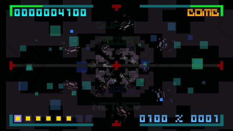 One thing to notice is that the HUD is much better organized in CORE than it was in BEAT. You have an easier time figuring out how far along in each level you are, and where you rank as far as Nether/Hyper/Mega/etc. go. This also helps you when you realize how close you were to finishing a level, and gives you that “One more time” feeling.