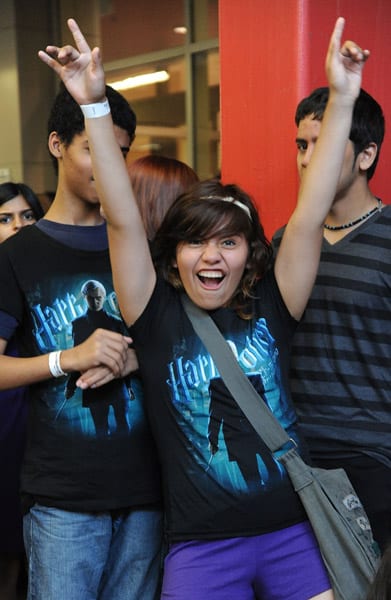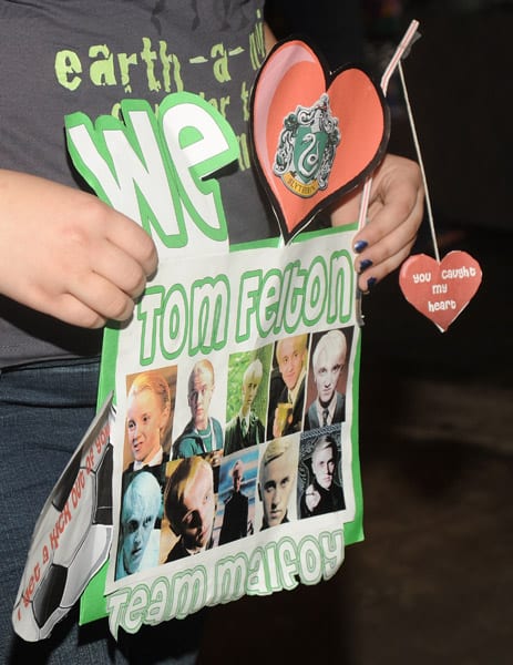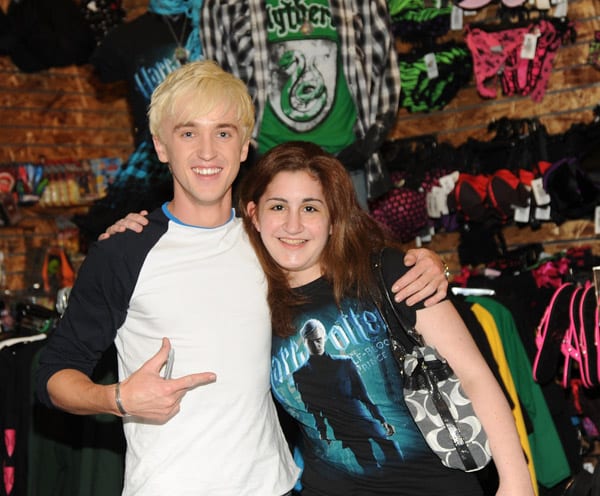 When he first came into Hot Topic with his girlfriend, (oh yeah, he has a girlfriend) Felton said he couldn’t believe all the Potter memorabilia. “I’ve never seen myself on a t-shirt, this is wicked!” he said. “Oh man, look, I have a Draco Malfoy doll! How cool is this? And there’s a Slytherin hoodie, I’ve got to have that!”