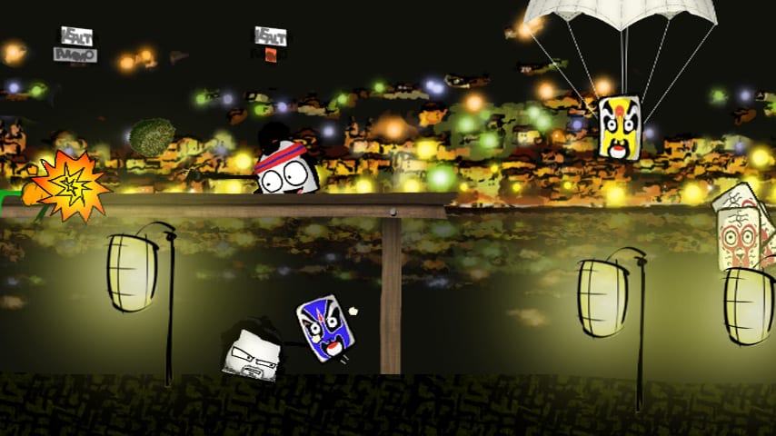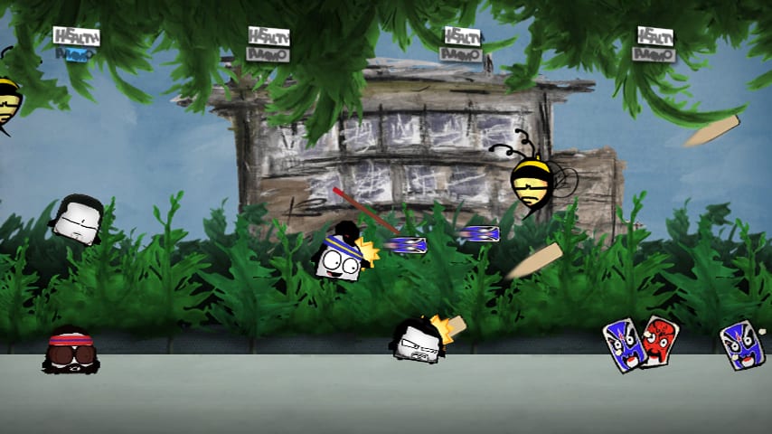 What little game there is plays well, as the controls are very tight. If you own a Classic Controller, you will want to use that rather than the NES-style Wii Remote, as the fatter D-pad makes for easier eight-direction shooting. Eduardo moves fluidly, automatically unleashing his melee attack”"a swipe with his power cord”"when enemies are within range. You can also grab enemies and throw them, as in the aforementioned Gunstar Heroes. You can block incoming attacks while taking out large groups of enemies simply by jumping around and timing your shots, thrown enemies and melee attacks, which is the most satisfying aspect of gameplay.
