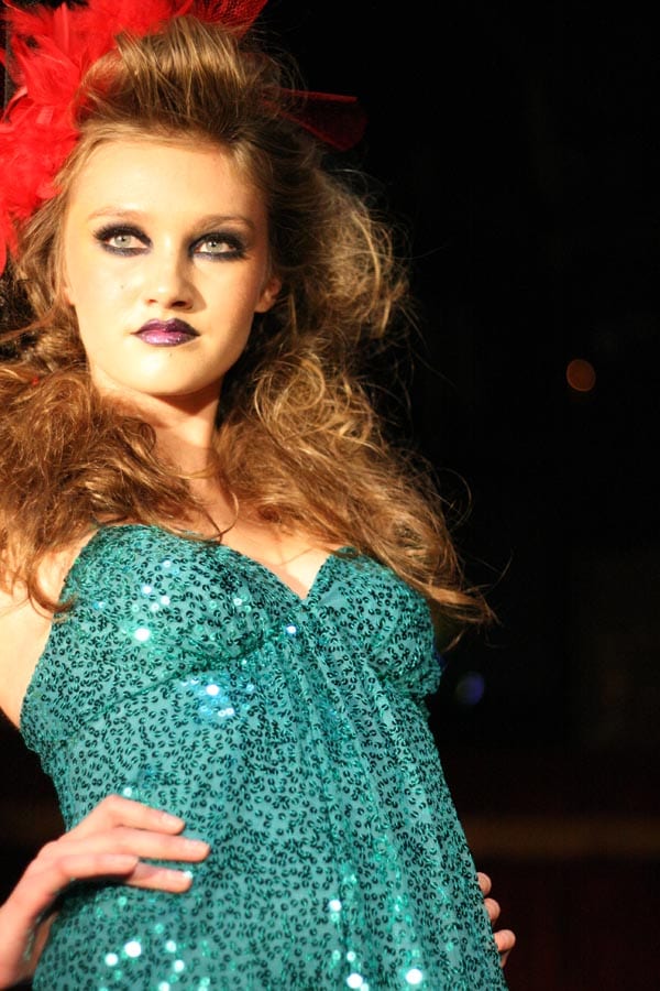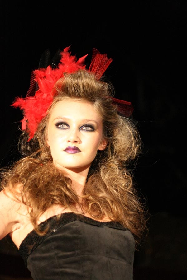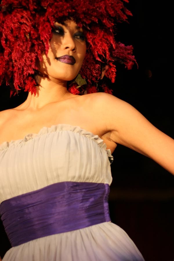 The event got off to a rocky start. Despite a 10:30 start time, the show began just short of 11:30, with a small distraction in between. Three models were brought on stage in robes to have their hair done – a process that took about 15 minutes of combing, blow drying, flower pinning, tulle wrapping and a lot of pained looks from the models.