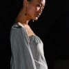 The collection was described as “feminine, unique and exuding a great sense of self.” The styles were certainly feminine – with flowing satins and puffy tulles, and the collection as a whole fit nicely together. In the order they were shown, one piece seemed to inspire the next. Certain fabrics, colors or lines carried over from dress to dress, making it all look almost evolutionary.
