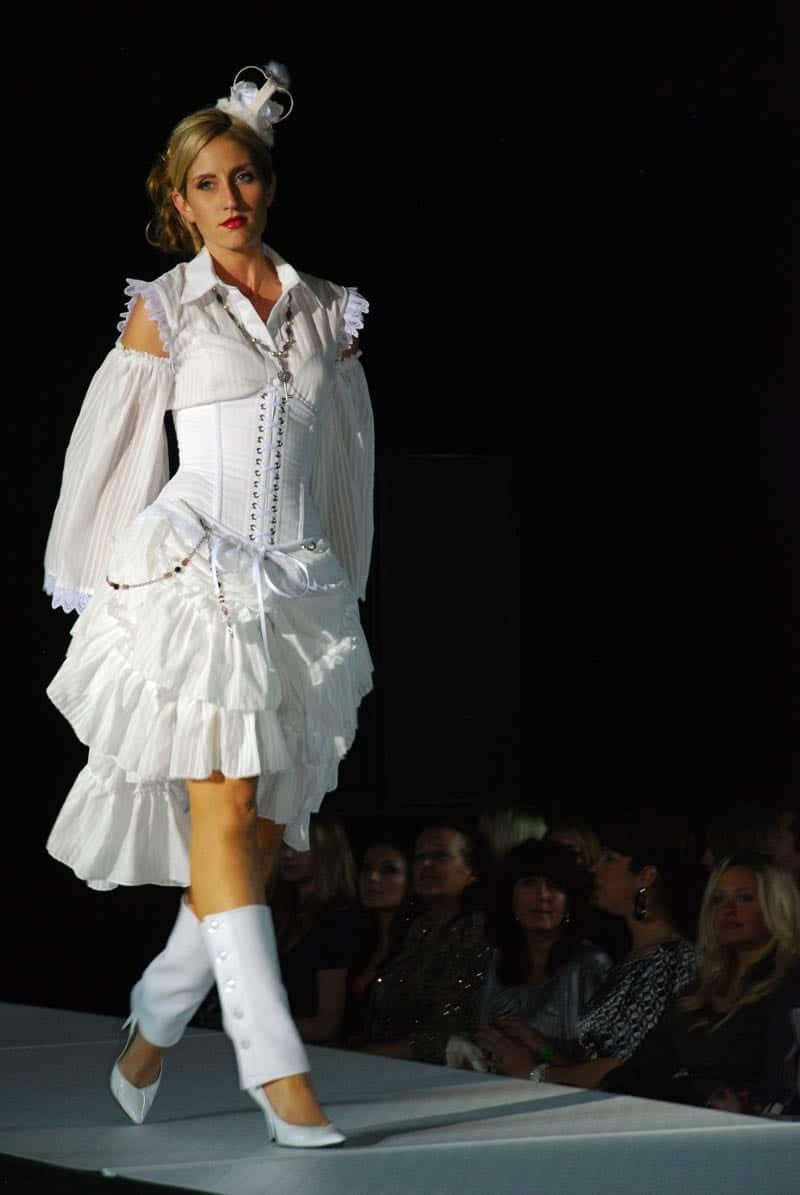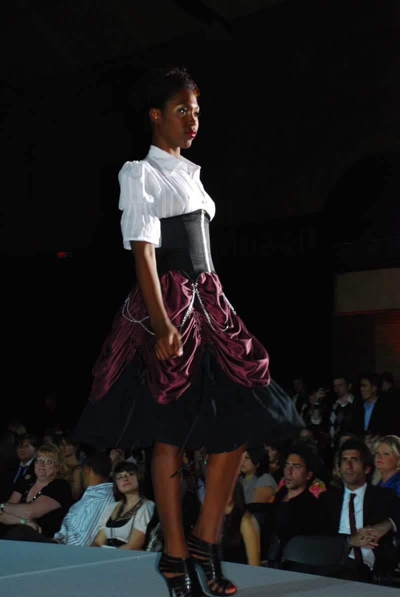 Jaques and Lucca showed collections that were quite the opposite of Allen’s. Jacques collection included men’s and women’s styles that used a lot of bright blue, particularly in the form of metallic spandex for the women. Lucca described her collection as “neo-Victorian” and each look used a corset and ruffles.
