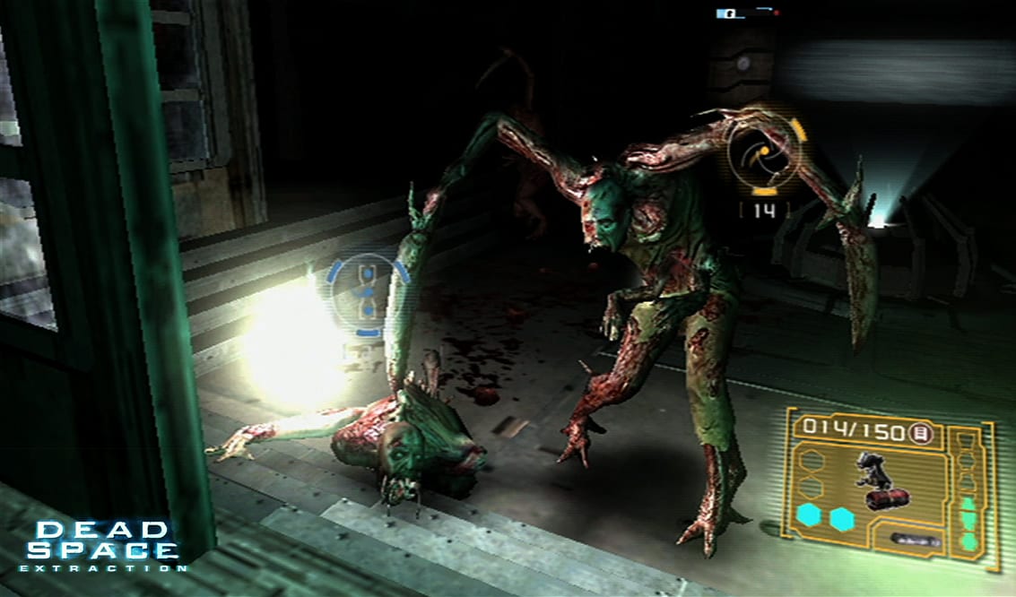 90The Dead Space franchise is probably my favorite new one of the past year. I awarded the original game five out of five stars in our old scoring system, praising it for its attention to detail, brutal gameplay and the limits it pushed the survival horror genre to. Visceral Games had crafted a dark and futuristic universe that needed to be expanded upon, because the story of Isaac Clarke was just a portion of what occurred on the flagship mining cruiser, the Ishimura. How did the Necromorph disease get there? What was it like for those who sent out the distress signal that Isaac and his team responded to in the first place, as they tried to escape a horrible death for as long as possible? Dead Space: Extraction sets out to answer those questions, but does so from not just a different character perspective, but also a different viewpoint.