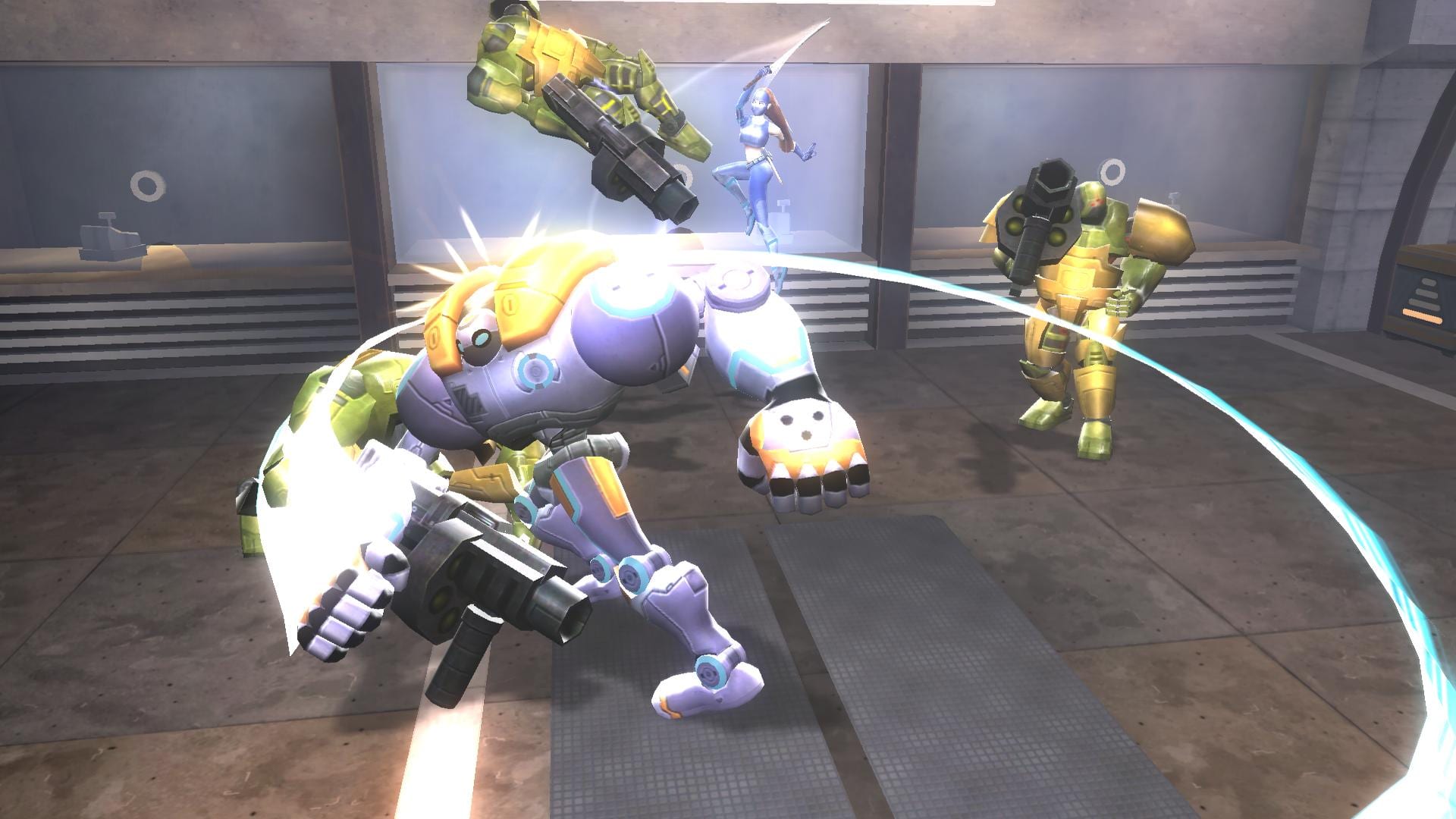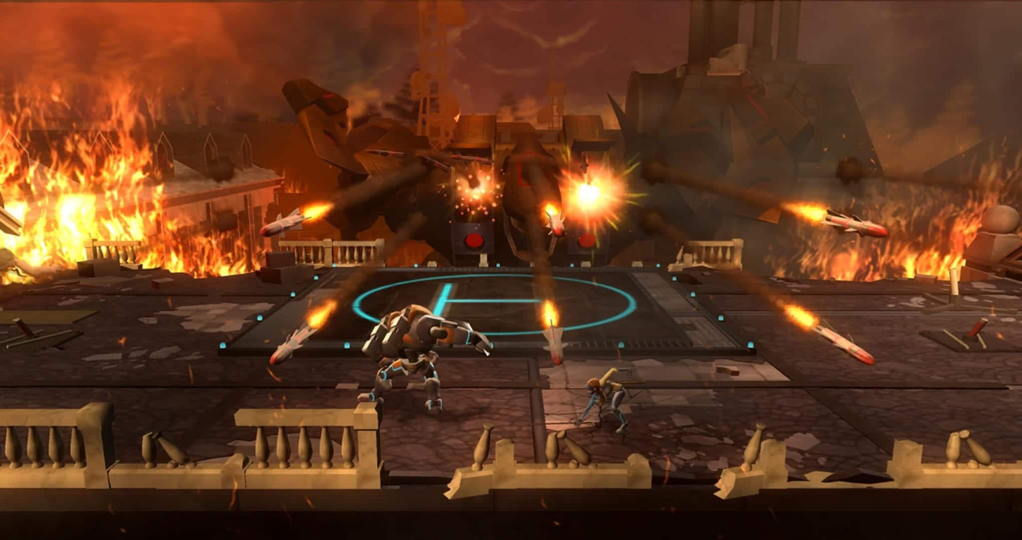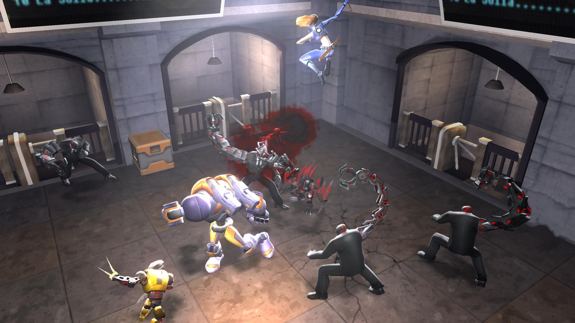 I could talk about the characters, but really, they’re just an excuse to hit the button to attack the other characters who are attacking you.‚ There is a bit of a plot in place, the type that would be enjoyable if you were still a kid and watching Saturday morning cartoons.‚ Basically, your female robot ninja, machine gunner and robot must fight through these creatures because, uh… Well, they’re trying to kill you.‚ Oh, and at some point, some evil organization double-crossed you, so of course you have to get revenge against them.‚ The female ninja is kind of hot, so you’ll probably want to fight with her most of the time.