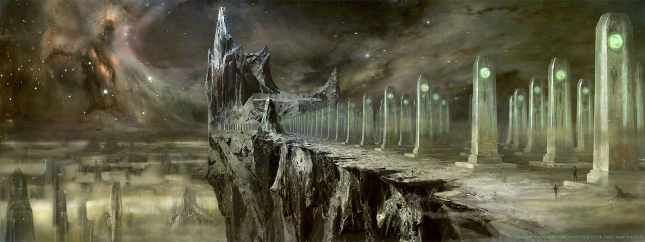 Warner Brother’s has released the following concept art of Oa, the headquarters for the Green Lantern’s, and the center of the universe.