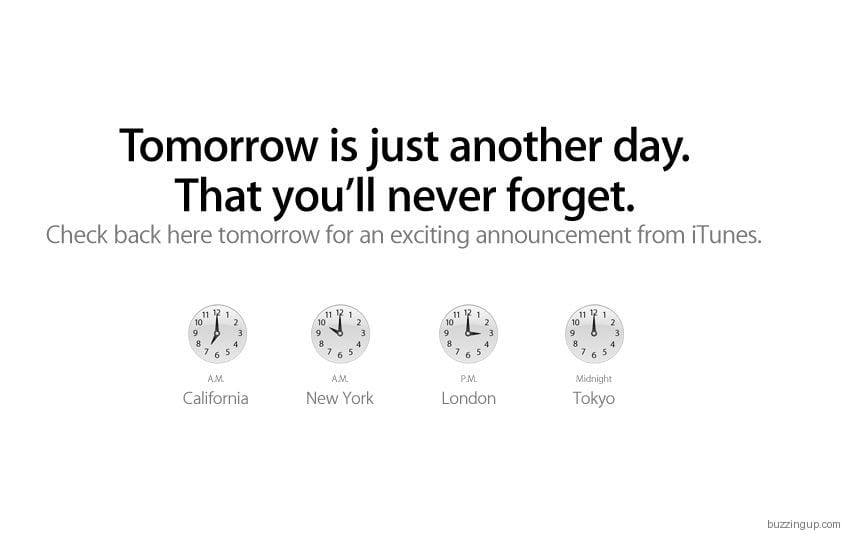 If this is the big announcement, it will be a huge letdown to the mac following. When the ambitious teaser appeared on the Apple homepage today, numerous sites speculated it would be the long awaited debut of an iTunes streaming site, believed to be called iTunes Live. Other anticipated announcements include wireless syncing, updated Apple TV functionality, or a newstand/magazine app store.
