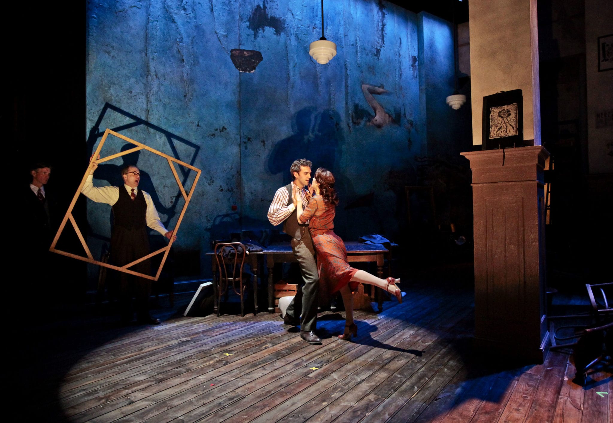 Along the way he falls in the love with Maria (Meghan McGeary), a scientist in the mold of Marie Curie, Hannah, a performance artist and revolutionary based on Hannah Höch, and (platonically) with Franz, an expressionist painter based on Franz Marc, who loves horses, cowboys and Marie. Max weds Hannah, but he loses Marie to Franz, and Franz to war. These losses drive and haunt his work. As he loses his culture as well, he radically alters his form of expression, abandoning the German language for one of his own creation: Maxperanto, a hilarious combination of European sounds and onomatopoeias.
