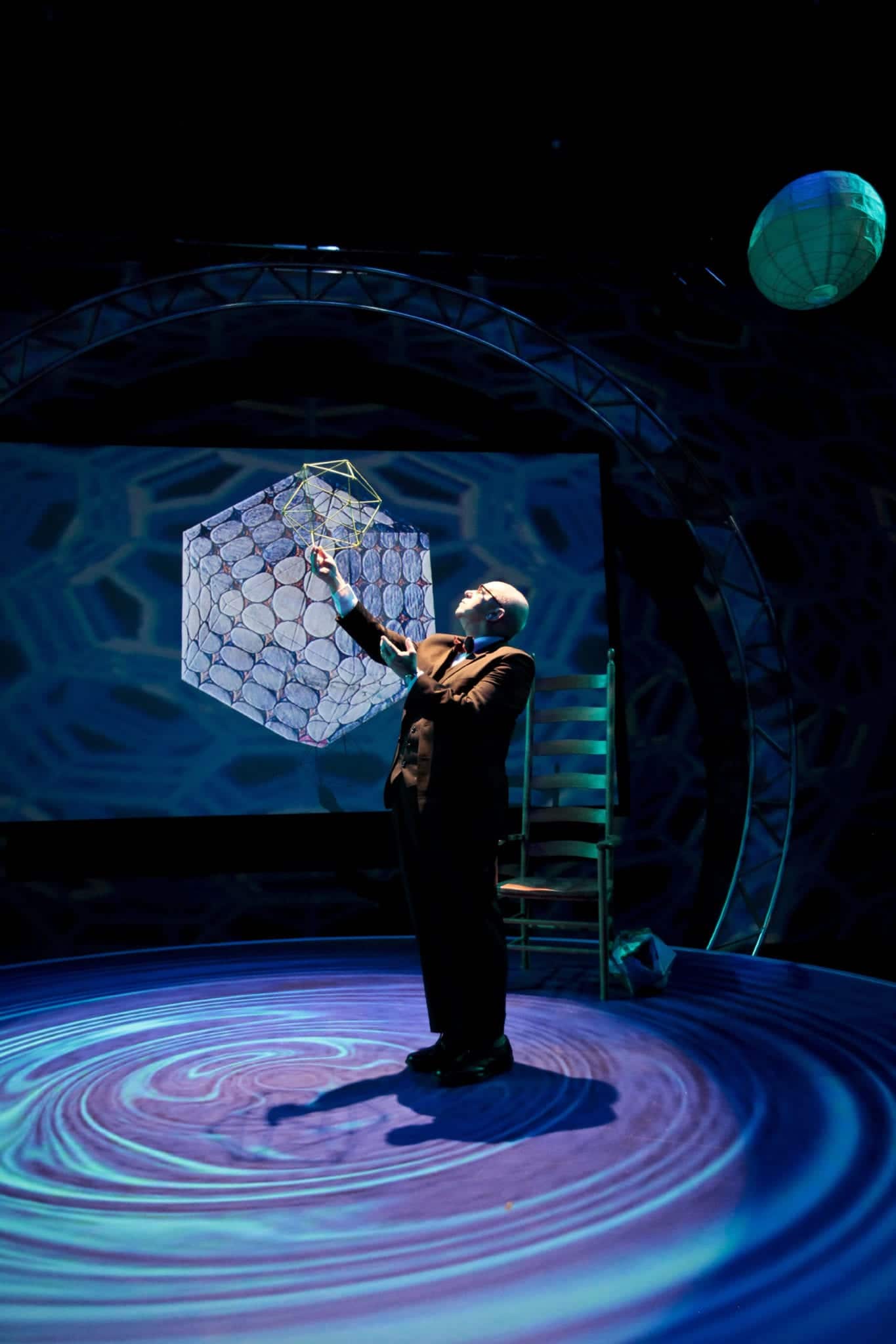 Jacobs’ achievement is immense. So is that of actor Tommy Derrah, who seems to have swallowed Bucky’s writings whole. Derrah finds the humanity, wonder and grace in the eccentric engineer and makes a two-hour lecture as compelling and emotional as any of the great dramas to have graced the Loeb Center’s stage.