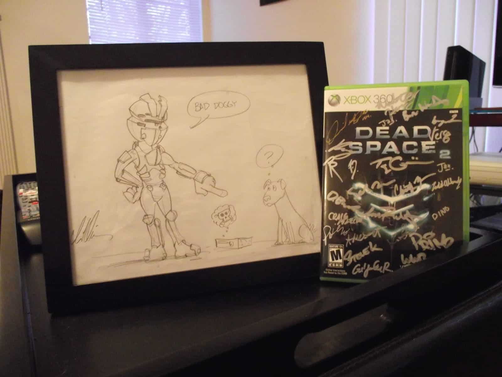 Ashley received a replacement copy signed by the development team and a one of a kind, custom artwork admonishing the dog for his wrong deeds.