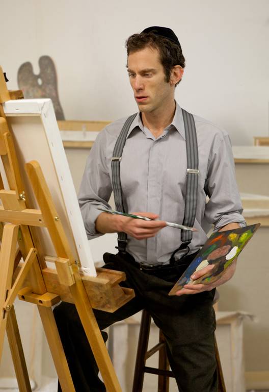 He also plays this character’s foils: in an early scene, an encouraging uncle who sees the young Lev as the next Chagall, or even Picasso, and in a later scenes, Lev’s second father figure, a lapsed orthodox Jew who gave up his culture to live his life as a sculptor and now seeks to sculpt Lev into an artists capable of surpassing his own achievements. As Colodner’s deep, resonant voice booms from the throats of both men, their parallels—stern orthodoxy to their religious traditions that supersede their genuine sensitivity and fondness—boom forth as well.