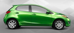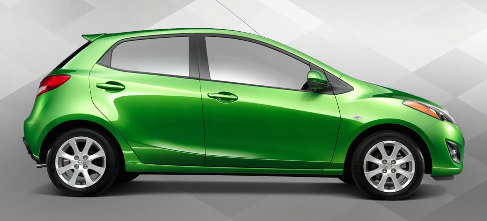 What is less than 13 feet in length, appears to be smiling and able to do a 3-point turn in a single lane? Why, the latest green crazed Mazda 2 of course. Small cars often give off the impression of being cramped, unattractive and incapable of providing ample protection for braving major highways, but this pint size dose of delight makes a better impression then a certain overpriced two door burp of a car. Mazda introduced the 2 after a long hiatus from the subcompact class since the 323 way back in 1994. Designed with the same front fascia the current lineup displays, as well as the sporty feel we have come to expect from Mazda makes, this, oh I hate to say it, is cute. Our Spirited green metallic 2 was nick-named Jelly Bean for her bubbly and adorable appearance.