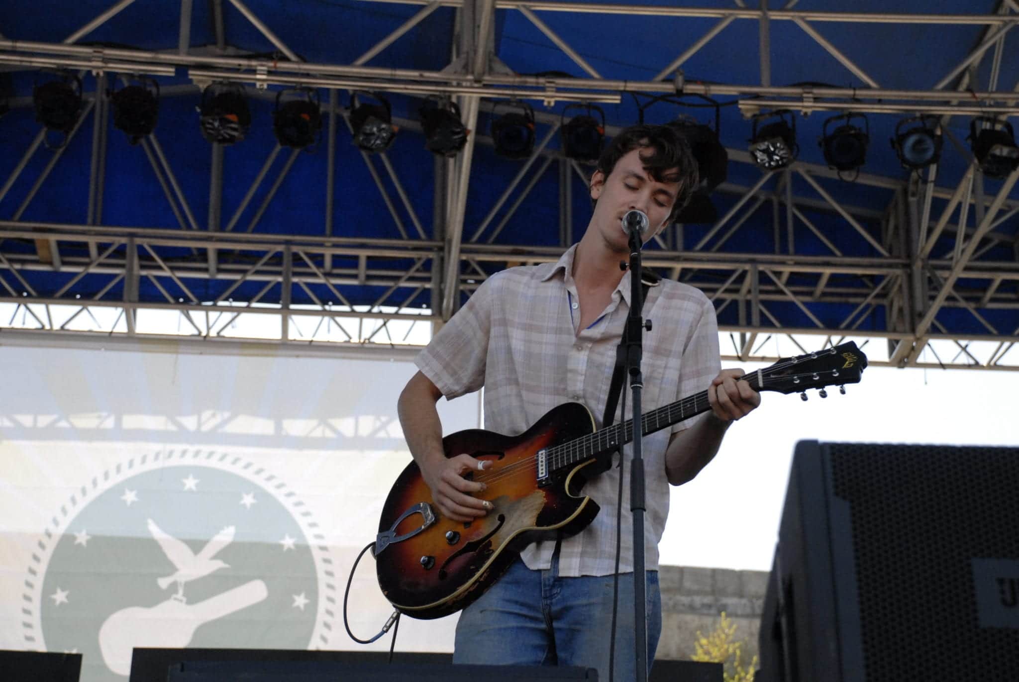 While I was playing a beach-blanked bingo in front of the Fort Stage, trying to orient myself and advance toward the action without stepping on anyone’s cooler, or head, I heard the unmistakable voice of Ian Felice.