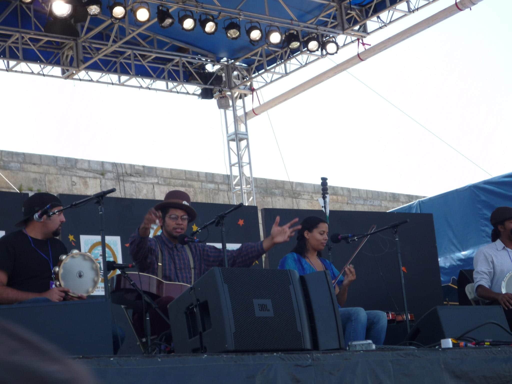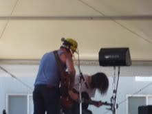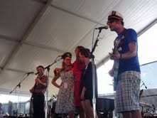 Early Sunday afternoon was the quietest I ever saw Fort Adams. There wasn’t even a crowd at the Stonehill Yogurt booth, and they were giving out free milk and cookies. Milling about toward the Fort Stage with my fellow straw hats, I heard the distinctive voices of the attractive boy/girl front persons of David Wax Museum, a Cambridge band who plays original music heavily influenced by Mexican folk.