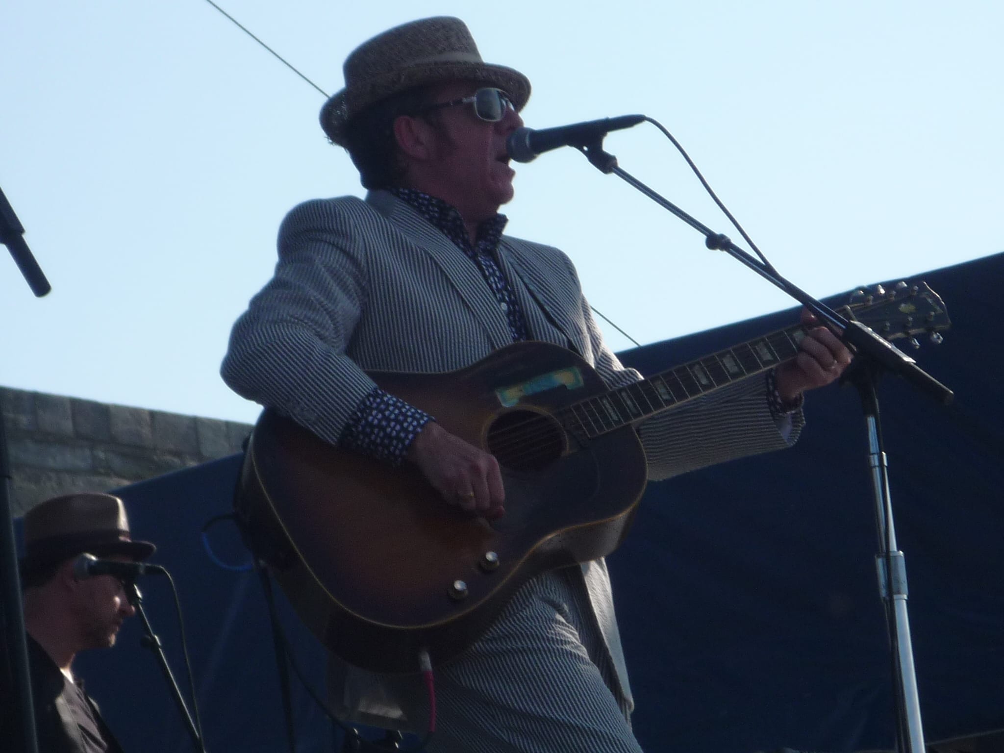 I’m convinced that Elvis Costello had the most fun of anyone at the Newport Folk Festival. He was absolutely ebullient in his seersucker suit, straw hat and shades with his plug-in acoustic.