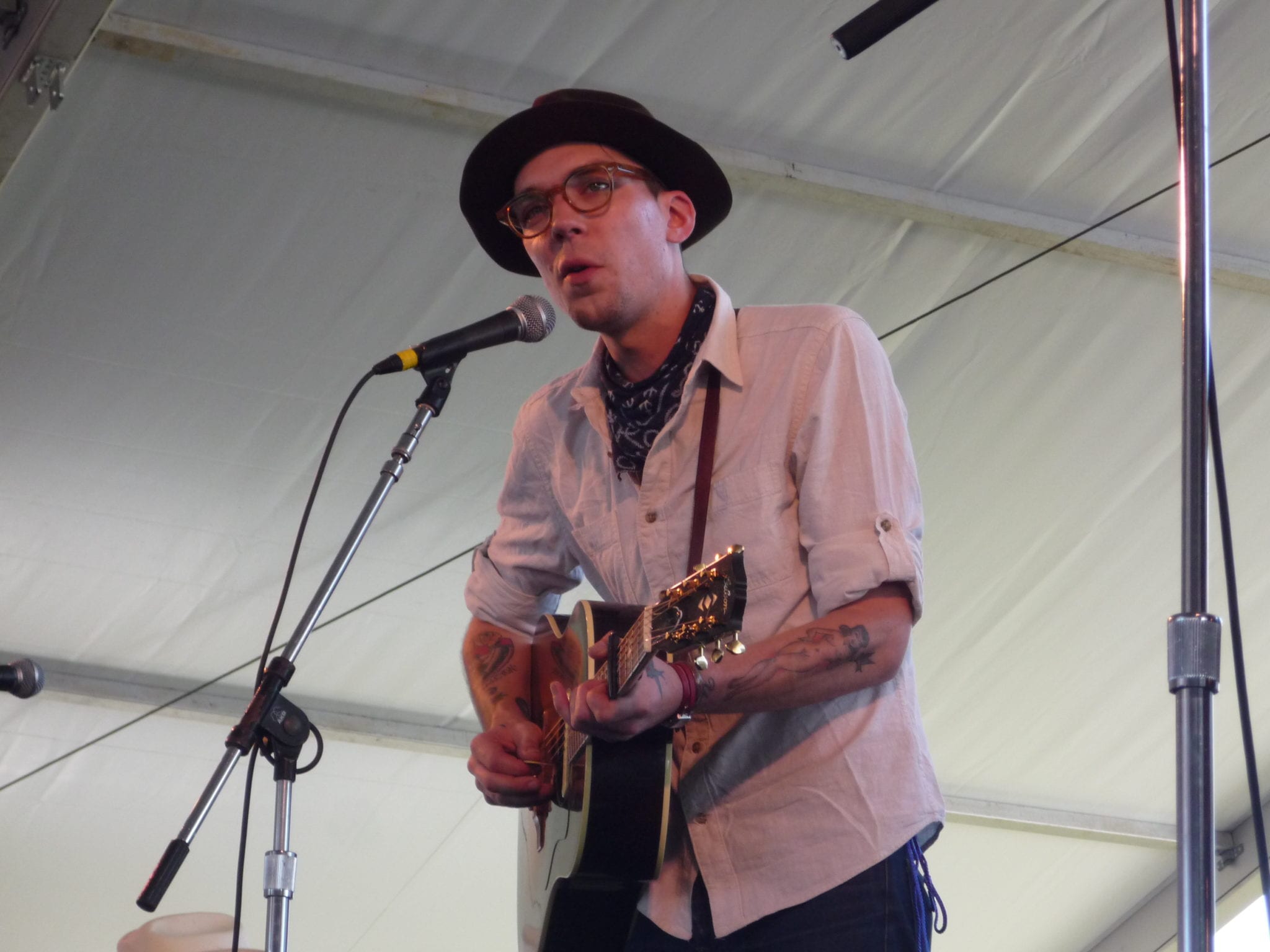 After Wanda Jackson thoroughly rocked my world, it was time to had back to the Bummer Stage for an act I was truly looking forward to: singer/songwriter Justin Townes Earle, son of Steve, denizen of Brooklyn, a true hipster/honky-tonk hybrid. Earle looks the part perfectly. He’s tall and lanky with tattooed arms and he wears glasses under his old fashioned hats.