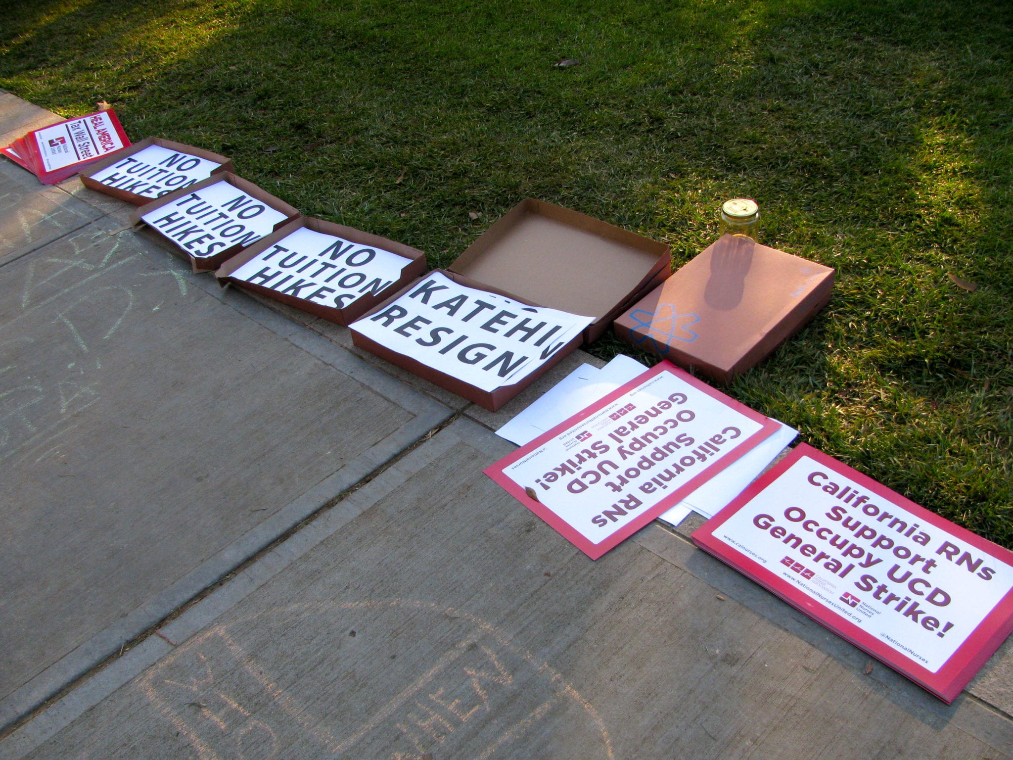 Various artistic expressions of frustrations took over the quad in solidarity for the strike and ongoing protests. Signs such as “The Chancellor was appointed, so was Hitler,” “California RNs support Occupy UC Davis,” and “I’m queer; I’m for justice” could be found throughout the conglomeration of protestors. Once again, no clear cause was present. “There is no singular cause by design,” graduate student and current protestor Susan Richardson explains. “There is no singular statement regarding the protests for a reason. We want everyone to feel like they have a place to voice their frustrations.”
