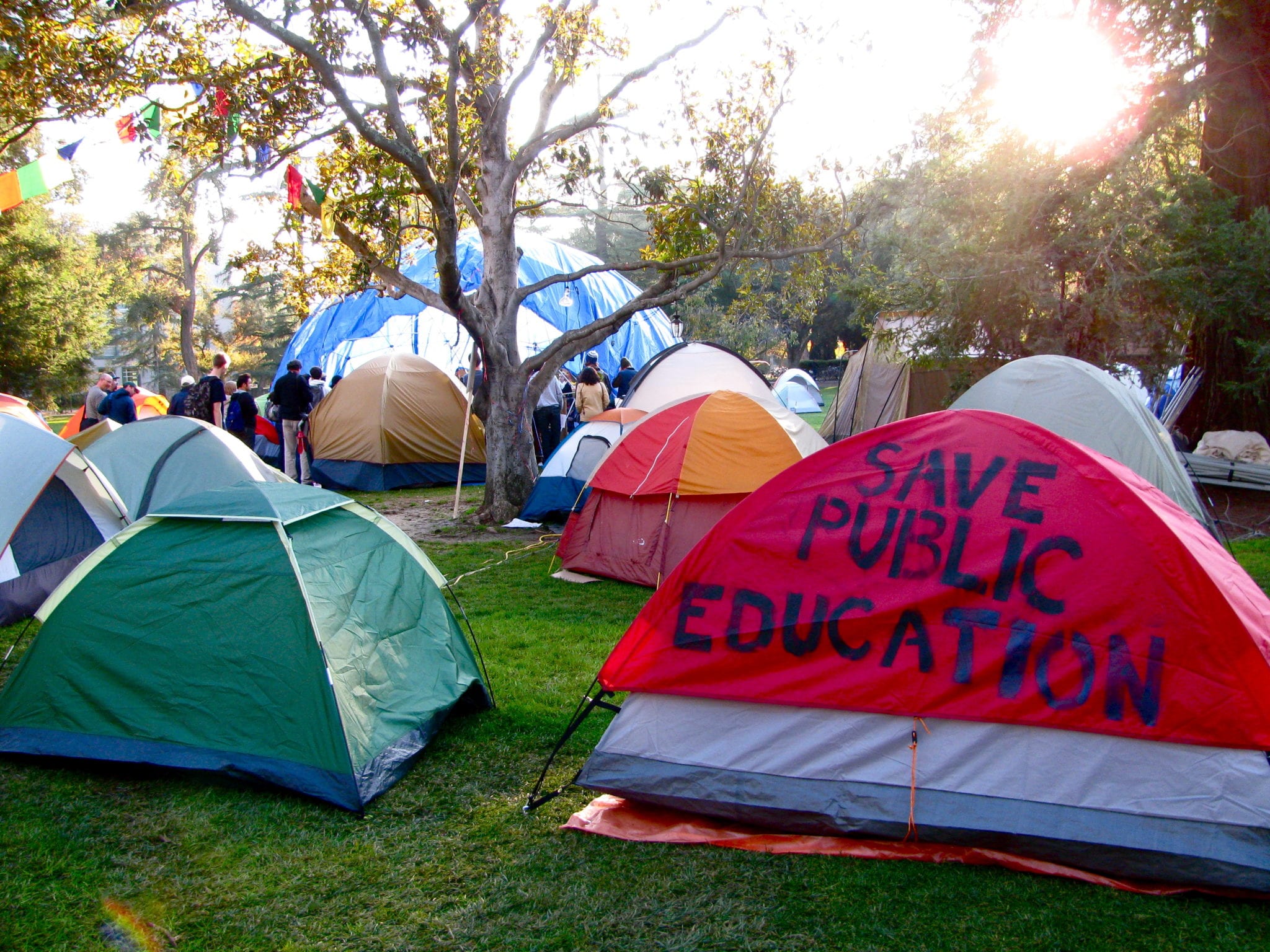 DAVIS, Calif. — The holiday weekend was very quiet around Davis. Only the remnants of the infamous pepper spraying incident remained. Although a bounty of tents could still be found on the quad, a mere handful of protestors could be found in them. Then Monday morning arrived. Once again, one by one, news vans crept back onto campus as if waiting for blood to be shed.