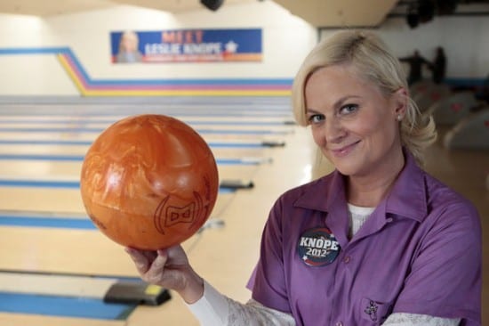 LesBen and the “Knope We Can” campaign kick off a series of focus groups in order to gauge Leslie’s appeal. Many seem to feel off-put by her perceived elitism. The snob in me would wish to defend Knope by pointing out that just because these folks have a fourth grade education does not make Leslie an elitist, but I will refrain from generalizations as I am above that. Damn, still pretentious. Well, at any rate, one comment particularly gets under Leslie’s skin: “She doesn’t seem like someone I would want to bowl with.” With a target in her sights, Leslie locks on Derek, or “Bowling Comment,” as her binder full of research describes. Ben, as boyfriend, teases her relentlessly about her obsessiveness. After multiple insistences that he can ask Ron how good she is at bowling he asks, “So I’m not sure I believe you’re good at bowling is there someone I could ask?” As campaign manger, he tries to reel her in. Strategically, the one vote doesn’t matter, and if she fixates on him she could lose votes instead. So, Leslie’s compromise is to sponsor a bowling night where she can schmooze with the voters and prove she is laid back (and a good bowler as Ron can attest too, apparently).