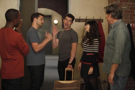 When more appliances start to break down in the loft, Jess insists they ask the janitor to fix them. When the manly trio suggests they don’t because he is frightening, she takes it as a challenge. She enters his basement office armed with a plate of cupcakes. When she tries to appeal to his estranged side she lets it slip that there are four people living in an apartment designed for three. Apparently the gang had prepared for such an event and initiates an operation whereby they empty the contents of Schmidt’s room onto their balcony and he pretends to be a foreigner visiting LA. Landlord dude (played refreshingly off-putting by the hulky Jeff Kober) isn’t buying, but upon inspection he deemed the arrangement acceptable (only if Schmidt’s paints over a disturbing mural he describes as a sexually charged, zero gravity tea ceremony). Jess then attempts to coerce some maintenance work out of him and like putty in her hand he agrees. Nick immediately assumes the landlord, who we learn is named Remy (Jess astutely observes his tattoo that reads, “Hello, my name is Remy”) is only trying to get in her pants.
