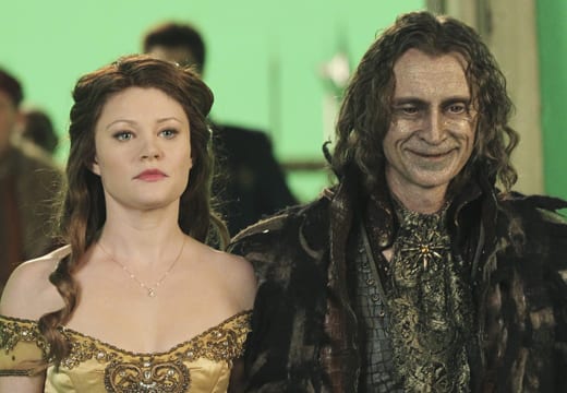 I was predisposed to be enthralled with tonight’s fairyback. Beauty and the Beast is almost certainly in my top three Disney flicks of all time (excluding Pixar) and Claire was one of my many beloved Oceanic 815ers so Emile de Ravin had me hooked with little effort. We’re introduced to the heroine as she stews by her father’s side, worried their village will be sacked as the Ogre Wars rage on (Am I the only one who would be fascinated by a detailed history of the events leading up to these wars?). I was mildly disappointed her dad was a rich, lordly fellow instead of an eccentric inventor. Anyway, Rumpelstiltskin appears as the solution to their suffering, promising to save their town in exchange for Belle’s services as his permanent housekeeper. Her betrothed, Gaston, insists she stay, but Belle is intent on breaking away from the social constraints of womanhood, seizing the opportunity to be heroic. She elects to go with Rumpy, much to his delight.