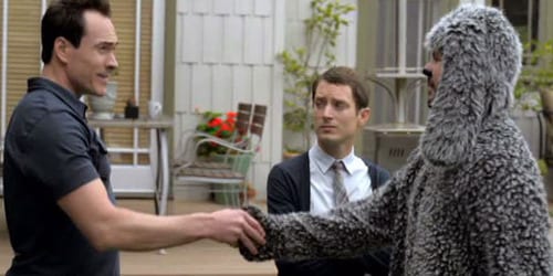 The premiere opens up with Ryan (Elijah Wood) walking up to Jenna’s house. I don’t know much about this Jenna character, but I picked up a couple things. One, it’s pretty clear that Ryan is hopelessly in love with her, judging by the depressed look on his face when he notices her engagement ring. Two, she’s Wilfred’s owner (be in awe of my detective skills!). She seems glad to see Ryan and invites him inside.