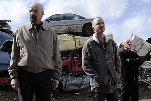 The “Sopranos” comparisons continue with our now traditional teaser cold open. In the past we’ve had jarring kickstarts to the season that involve pink teddy bears floating in a pool, the “Cousins” crawling to a Heisenberg shrine, and a Gale flashback that reveals how he became entrenched in Gus’ empire and sealed his fate. While some have been maligned for their absurdity and forced foreboding, these teasers have always accomplished, for me, the establishment of the season’s tone and direction. Season two’s teddy bear might be the most manipulative: a striking image with no meaning out of context. We knew that this was where the story would end up, but what the heck does a burnt, pink teddy bear have to do with Jesse and Walt? The payoff doesn’t come until the season’s final scenes when we realize what that bear falling into the pool symbolizes—a devastating plane crash that morally implicates Walt.
