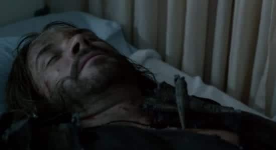 Back in the ICU, Weaver’s blood-purification procedure turns out to be a success, and he soon regains consciousness. Just as Tom is sharing a laugh with Weaver and the rest of the crew, someone comes in to tell him that Pope is awake and going crazy. When Tom gets to him, Pope gives him the bad news: the aliens know where they are and they’re coming for Ben. Upon hearing this, Tom checks on Karen and finds a battered and bruised Maggie on the floor of her room. He then heads to the roof to find Hal in a similarly disposed state. As Tom tries to revive Hal on the roof, the last shot we see is Ben and Karen running through the woods as their spikes glow together.