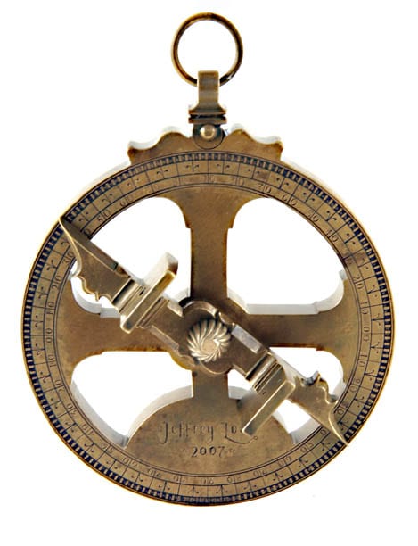 Artie and Claudia work out the puzzle downstairs and discover a hidden passage. Claudia is the only one of the two to fit in there, so she goes in and unearths Magellan’s astrolabe (a circular navigation tool that one looked through to determine one’s position by the stars and sky). They figure out that the stopwatch gives them 24 hours because Magellan was first to cross the International Date Line—this is the fail-safe! But it’s missing a piece, its alidade, which is the part that rotates to read the position of the sun or stars, so Claudia crawls back into the passage to look for it.