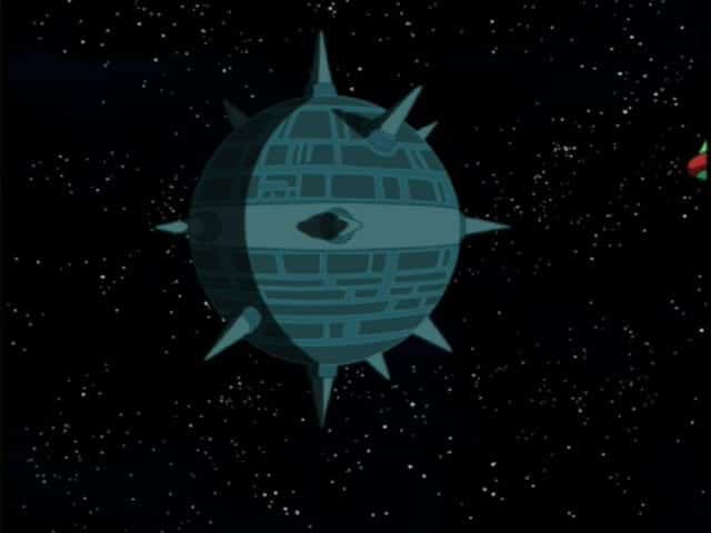Fry, Leela, and Bender take off for the Near-Death Star to find Mr. and Mrs. Ned and Velma Farnsworth. When the entry robots initially deny them access, Fry gives them a glimpse of his Clippie award and they excitedly let them pass. I thought they were going to shoot him down, so it was funny to see them unironically treating him like he’s a big celebrity.