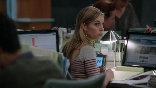 MJ: The job I had at NBC definitely overlaps a lot with what Tess does on News Night since she’s an Associate Producer and her responsibilities are rooted in research. As a newsroom staffer, she’s pretty low on the totem pole, but as I learned at NBC and I think Aaron knows and appreciates, those are the people who are the glue of the whole production they put on each day. I love to play her because she’s good at her job. One thing I read on Twitter that I loved was that Tess is “everyone’s girl Friday.” She doesn’t like drama, she’s there to do the news and be as helpful as possible, all while firing off a one-liner here and there.