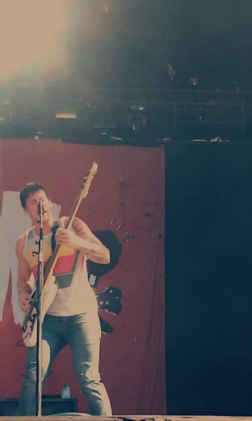 All Time Low, hailing from my homeland, took the stage next. For just those 45 minutes I’m sure that the main stage featured a completely disproportionate number of women, people under 20, and women under 20 – something that the band members seemed to acknowledge when they collectively complimented the breasts of the people of Hasselt. They invited the crowd to a massive orgy by the Sbarro stand – “Boom, you’re pregnant!” lead singer Alex Gaskarth declared – between demands that the crowd jump, crowd surf, and sing as loud as possible. Whatever your music taste, they were definitely solid entertainment for the whole of their short set, if demanding of a bit more energy than a lot of us could muster in the hot sun.