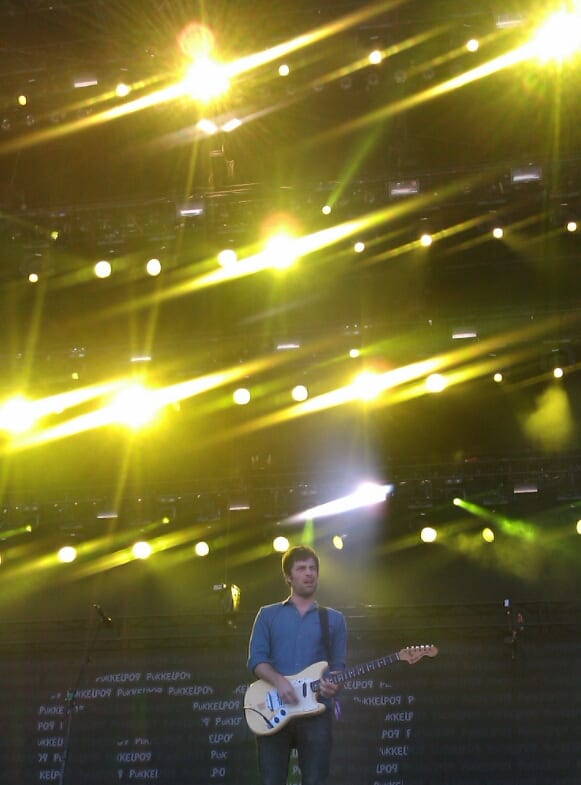 The Black Keys were the last of the non-headliner warmups, and proved themselves to be more than worthy of such a slot. Not much for banter at the microphone or chatting with the crowd (drummer Patrick Carney didn’t say one word from behind the drum kit), they filled their set almost completely with music, rolling through their singles (“Your Touch”) a few deep cuts (“I Got Mine”), and a lot of material from their latest record “El Camino” (“Little Black Submarines”, “Dead and Gone”, “Nova Baby”, and, of course, “Lonely Boy”). Their “light show” of sorts, vertical rigs that look like giant lamps stacked one on top of the other that illuminated at intervals, gave the set a kind of old-fashioned, artful touch – sort of how the band itself can be distinguished from their peers. Honestly they were a pleasure to watch from start to finish, and provided the perfect mix of dancing, jumping, clapping, and singing (really, the chorus for “Lonely Boy” is about as crowd-sing-along ready as you can get) to get the crowd in a the perfect mood for a headlining set.