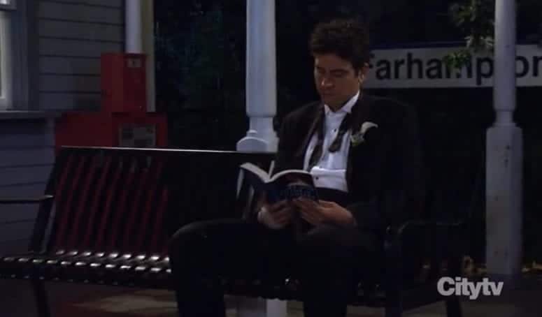 Later on, Ted meets up with Klaus at the Farhampton train stop and asks him why he couldn’t go through with the wedding. Klaus tells Ted that even though Victoria was wunderbar (he’s VERY German), she wasn’t The One. He explains that some day, Ted will meet someone and know instantly that she is The One. The episode flashes forward to Ted sitting at the Farhampton station after Barney and Robin’s wedding, and of course a woman (whose face we never see) arrives at the station carrying her signature yellow umbrella.
