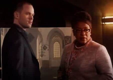 Over in Rome, Mrs. Frederic and Steve are deep within the Vatican trying to investigate the Brotherhood of the Black Diamond. It’s not explained enough for me why the two of them specifically are there, but I stopped being concerned after the priest does a Diagon Alley with the secret entrance to the Brotherhood’s library. He hasn’t seen anyone there for months, and it looks like they didn’t plan to leave. I like the dynamic between Mrs. F. and Steve. They haven’t been together too much over the course of the show, but they have a mutual respect for each other that would make them a good team.