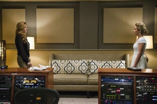 The episode begins, seemingly, a few weeks beyond the previous episode’s end. Rayna and Juliette have both agreed to the tour, and with the live version of “Wrong Song” at the top of the charts, there’s a renewed public interest in both artists to capitalize on. And so the episode begins in the studio, with Rayna laying down vocals for the studio rendition and Juliette missing in action. No one seems to know where she is, causing Liam to express his hesitation about the tour. They certainly can’t have Juliette flying off the rails on a five-month tour, he argues.