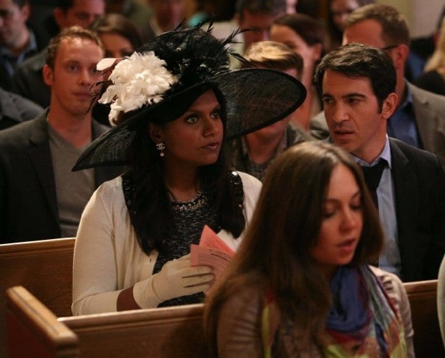 Mindy takes her conundrum to Danny, who mostly insists on talking about how Catholic he is, but he does agree to accompany her to Casey’s service. Mindy’s logic is that Danny knows church, so he can help her tell if Casey is legit or actually a cult leader. She dresses for church in one of the most ridiculous hats I’ve ever seen outside of My Fair Lady, and when her brother Rishi—who’s crashing for spring break—calls her on it, she dismisses him with a Tyler Perry reference. Mostly, I’m just excited to have seen Rishi twice in the last couple of episodes, which I hope means that he’ll be around more often. He’s genuinely funny, and has great sibling chemistry with Mindy.