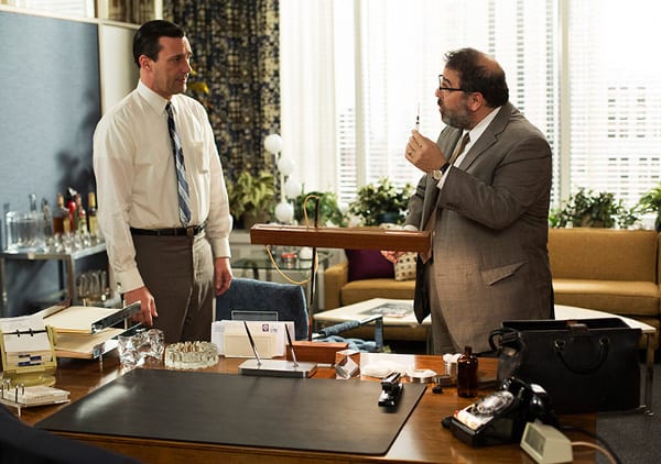 And this applies to this show, too. While the booze, cigarettes, sex and even the shots of Vitamin B give it a gloss that makes the pain easier to bear, without feeling the agony of separating from what we once had, we end up splintered into fractions of a soul. There’s no Dick, no Don, only broken pieces of a heart that belongs to no one, because he couldn’t let go. So Weiner, let go of the four Emmys and give yourself over to the new Mad Men. And it’s okay to resent what you’ve already done. It’s more than healthy. Just maybe don’t do a whole episode where you whine (cleverly, of course) about how hard it is to come up with something new and really be something new.