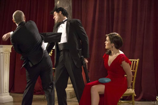 Elizabeth, after a pep talk from Red, sneaks down to steal the statue from the safe room, but sets off the alarm, getting herself captured in the process. Madeline is escorted to the safe room, when she finds the statue and easily pockets it. Fulfilling his earlier promise, Red beats up a guy or two and finds Elizabeth, tied up and guarded. “There you are! What the hell happened to you?” he yells to her and a confused security officer. “You just leave me alone with that awful Algerian? He’s been hitting on me for twenty minutes!” The rant, which portrays Elizabeth as a spoiled girlfriend of a rich man, goes on for like five minutes and is somewhere between hilarious and just weird. But good weird. James Spader is always great when they give him a good tangent. “What the hell was that?” Elizabeth asks, echoing my feelings. “I don’t know, it just felt so right in the moment,” he replies after punching the security guard out.