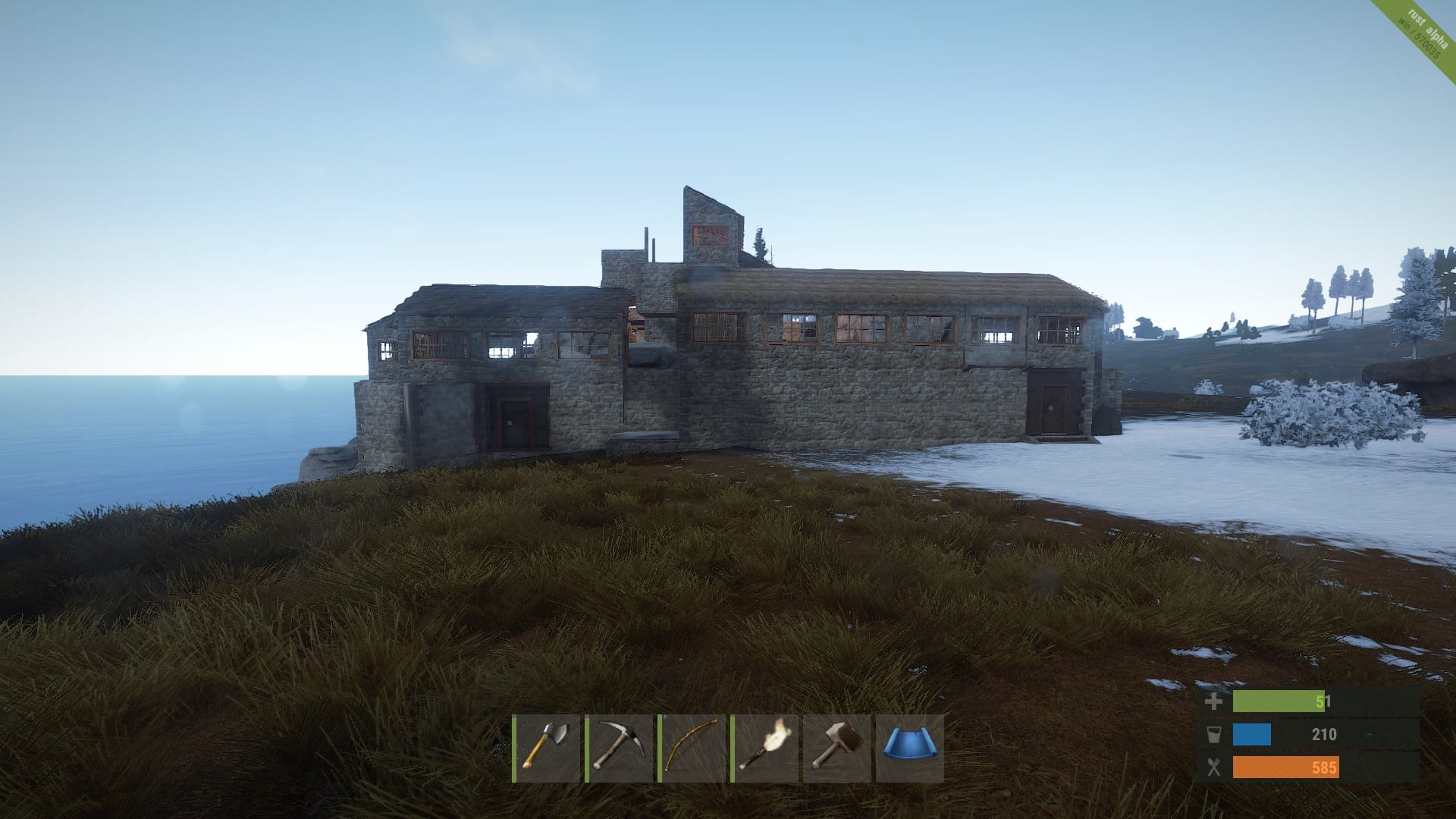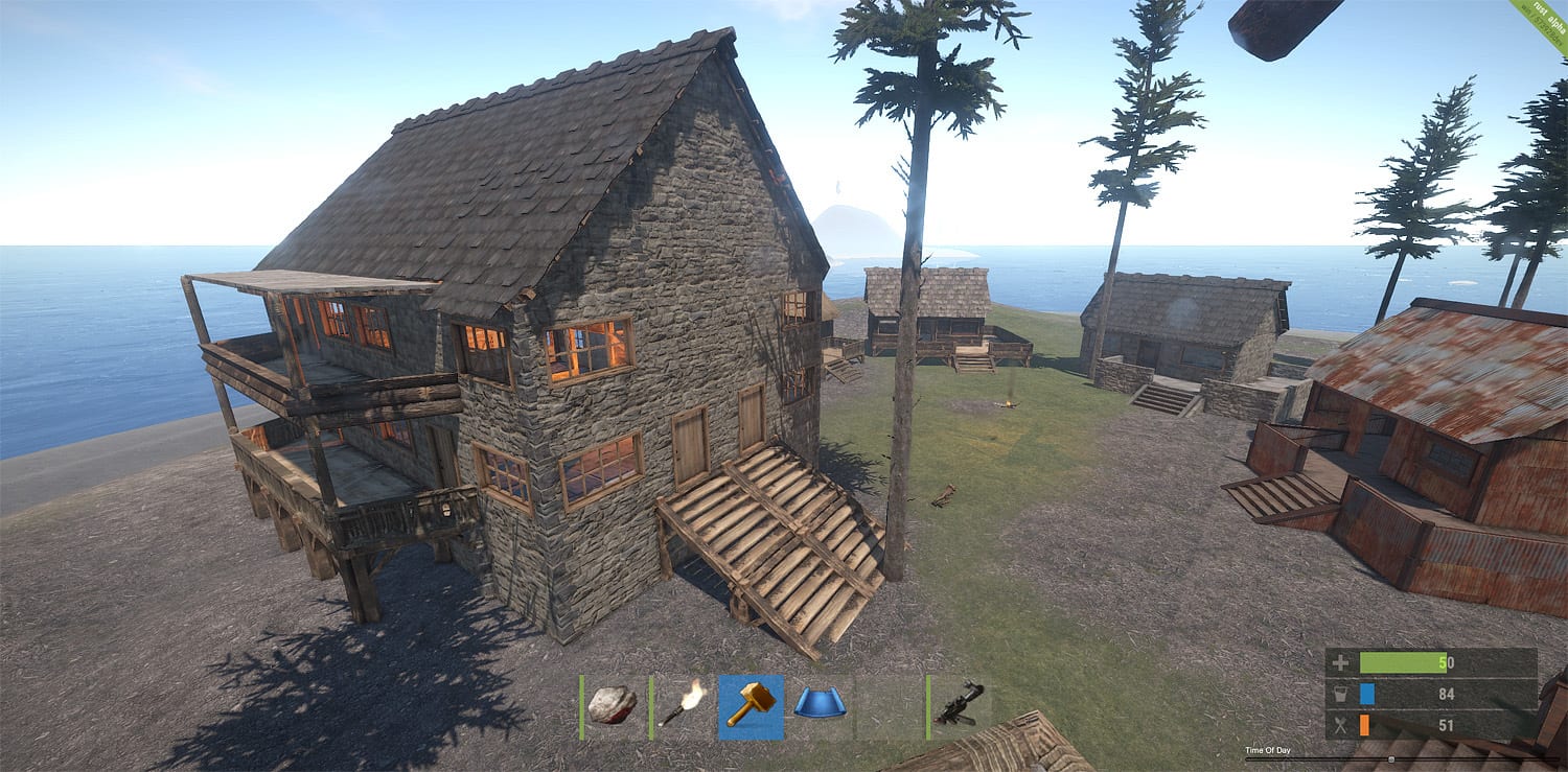 Its building system is something to be reckoned with, it being incredibly flexible with where you place your initial foundation before switching over to a responsive snap system. New segments of the building snap into the possible positions and provide a good amount of flexibility with the types of walls you can place and can produce some interesting and very fun results. A man’s home is his castle and in Rust, your home can quite literally be a castle. Players have built massive walls, small towns, cities, shrines, fortresses, towers, lake houses, and mountainside manors. The world is yours and you have the tools to sculpt it.