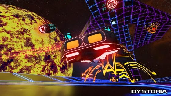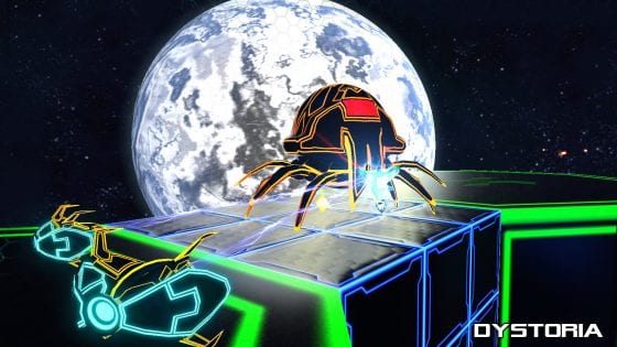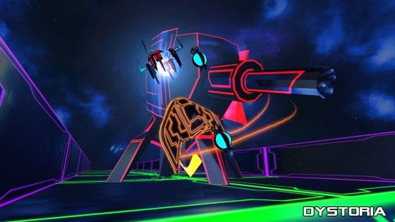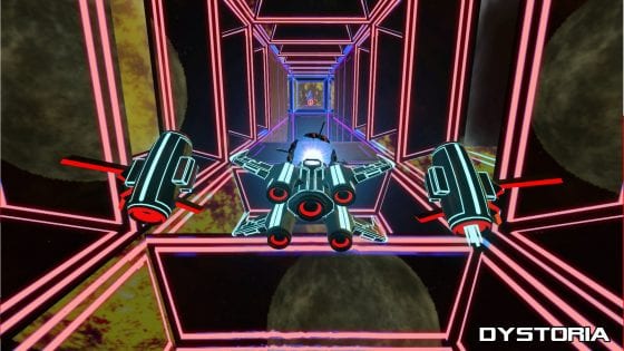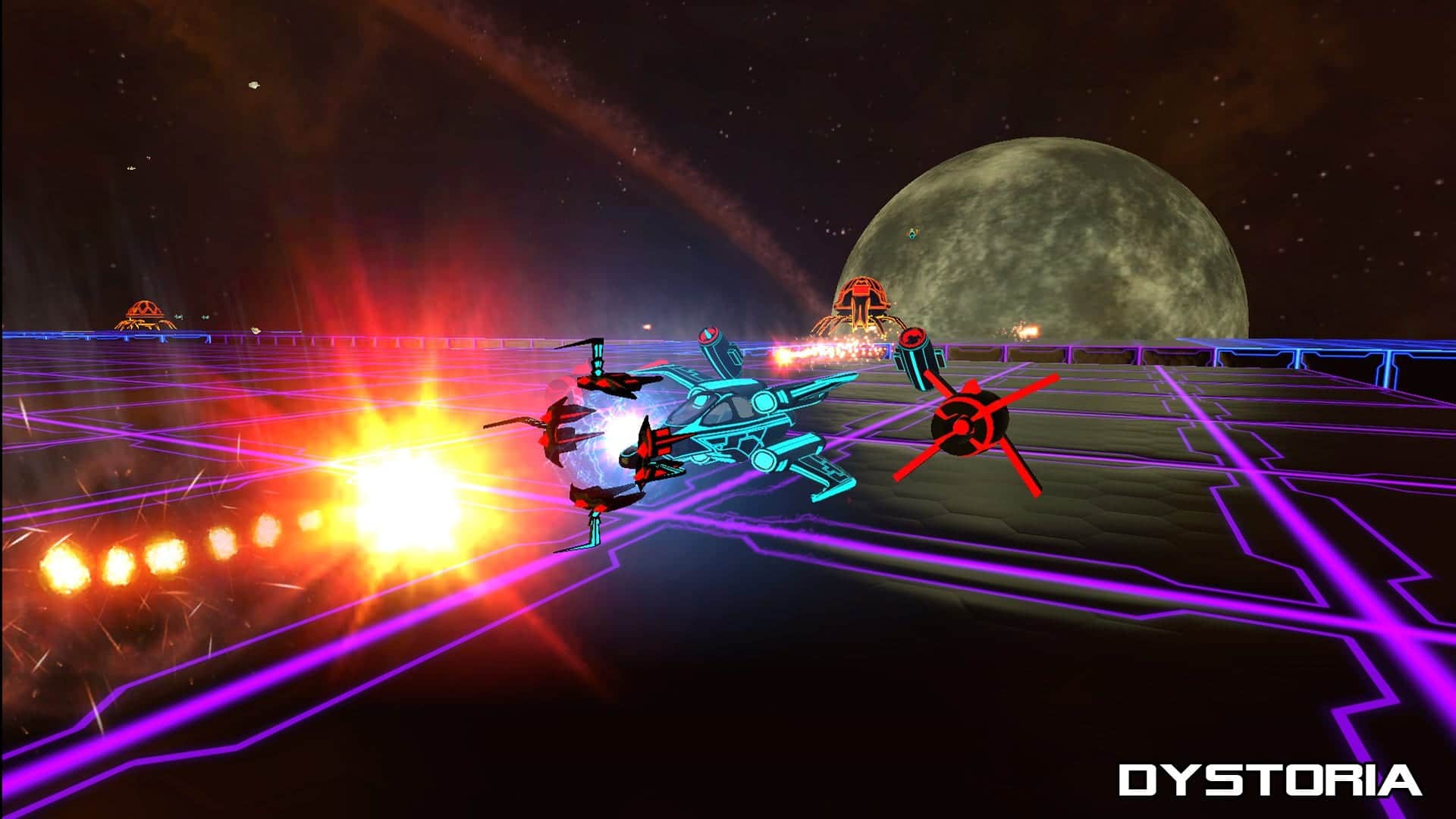 Visually, Dystoria is a treat to behold. Tri-Coastal Games fully embraced the “Tron” art style and built an engaging world out of the legendary look. The levels seem to be build out of blocks that are outlined by the neon primary colors reminiscent of 80’s arcades. The ship and enemy designs aren’t super memorable, but the entire visual package does a great job of portraying scale. And this goes without mentioning the soundtrack, which brings a thrilling bass to each encounter and despite the limited track rotation, never got old.
