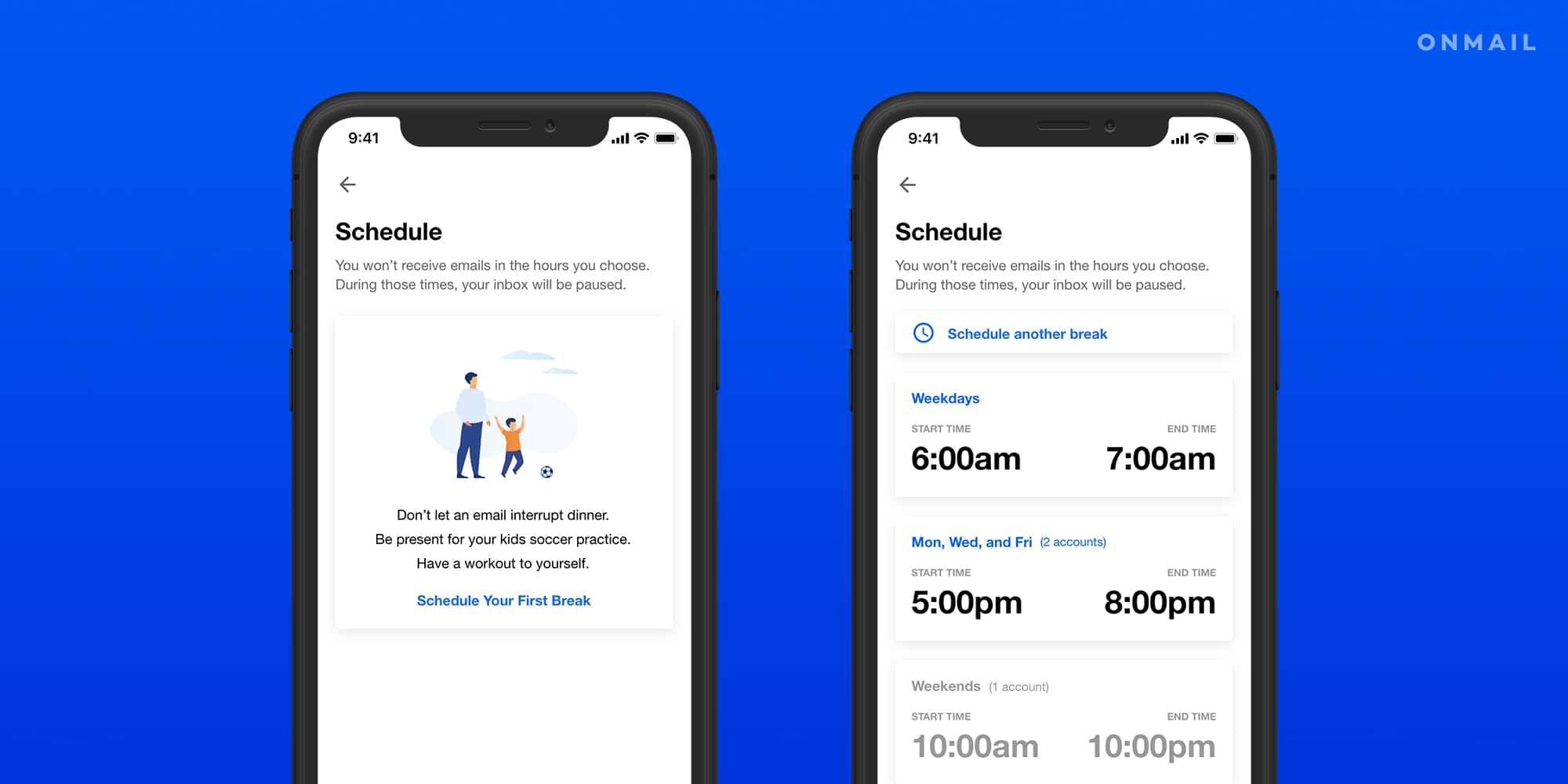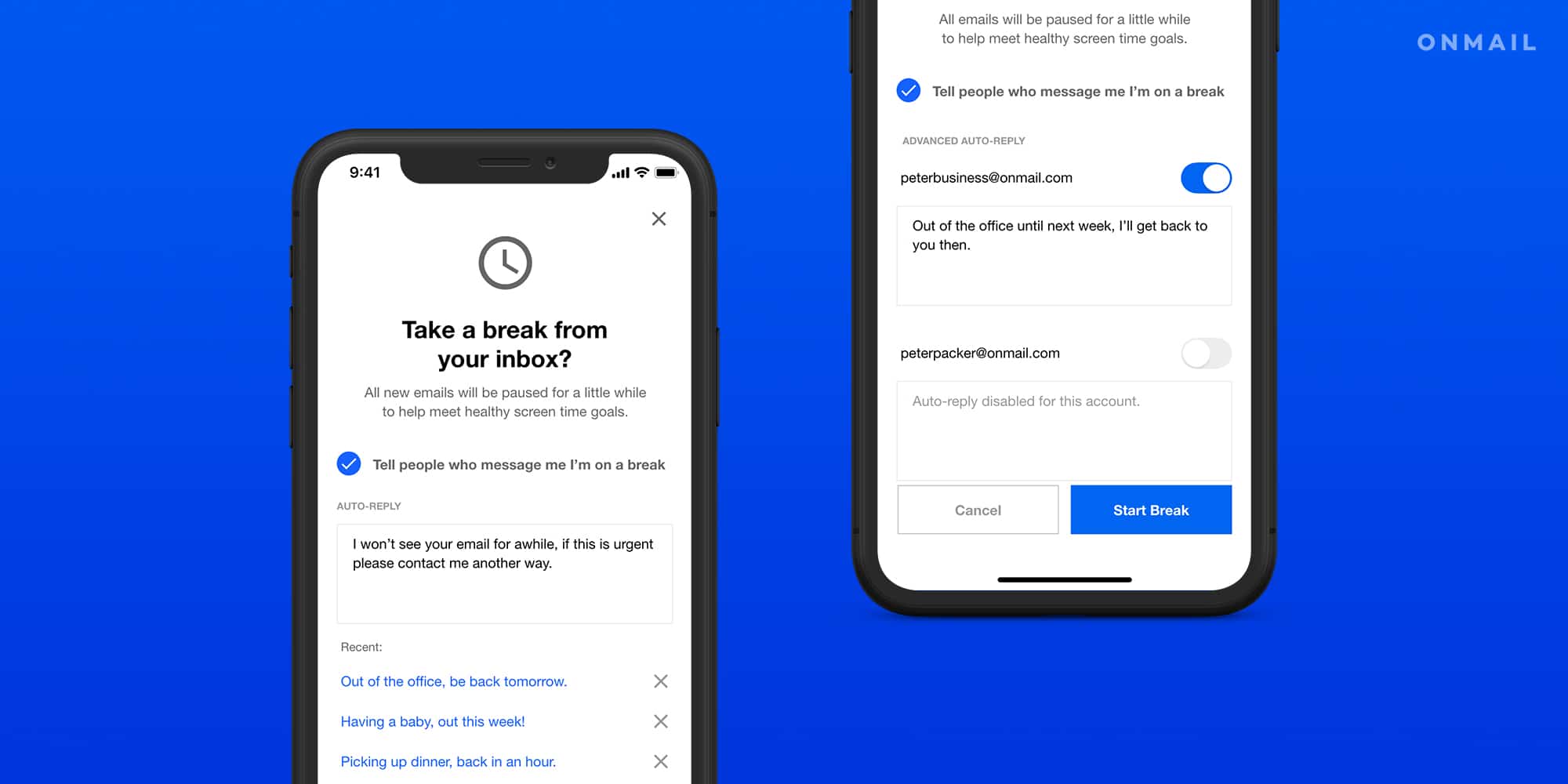 OnMail aims to tackle the most complex and impactful problems in email today, and the new Inbox Break feature finally prevents emails from coming in at inconvenient times.